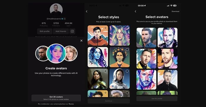 Bước 5: Khi quá trình tạo ảnh đại diện AI TikTok hoàn tất, bạn sẽ thấy một số hình ảnh hiển thị. Tại đây, bạn có thể chọn Sử dụng cho hồ sơ để thay đổi avatar TikTok của mình hoặc Tải về thiết bị để chia sẻ với bạn bè hoặc đăng lên các trang mạng xã hội khác như Facebook, Instagram,...