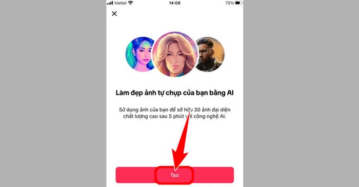Bước 2: Khi đã vào mục Tạo ảnh đại diện, hãy chọn Tạo để bắt đầu quá trình tạo ảnh đại diện AI TikTok cho tài khoản của bạn.