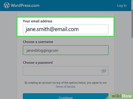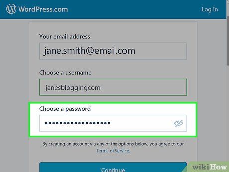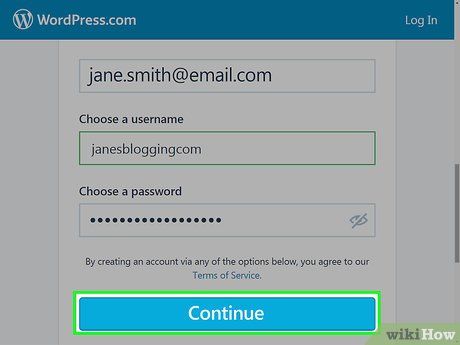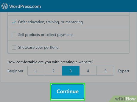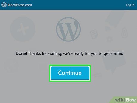 Nhấp vào Tiếp tục ở giữa trang gốc nơi bạn đăng ký tài khoản WordPress.