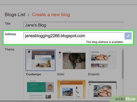 Chọn địa chỉ cho blog. Nhập địa chỉ bạn muốn sử dụng vào ô 'Address' (Địa chỉ), sau đó nhấp vào địa chỉ hiển thị dưới danh sách lựa chọn.