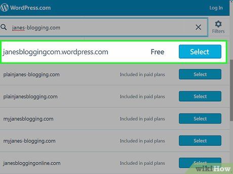 Chọn Chọn (Miễn phí) dưới khung nhập liệu. Thao tác này tạo địa chỉ miễn phí cho blog.