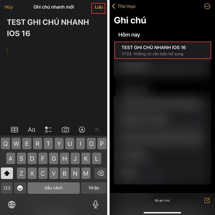 Bước 3: Hãy thể hiện nội dung ghi chú của bạn và sau đó bấm Lưu.