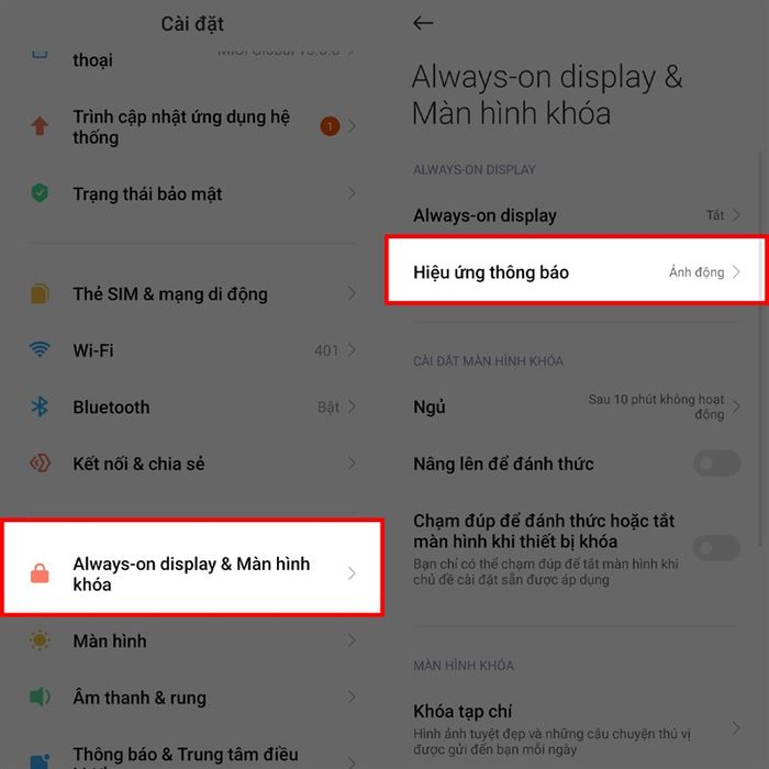 Bước 1: Vào Cài đặt > Always-on display & Màn hình khóa > Hiệu ứng thông báo.