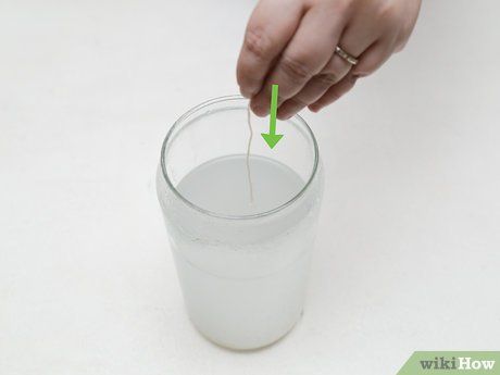 Ngâm sợi cotton vào hỗn hợp. Lấy một sợi dây cotton dày và ngâm vào hỗn hợp borax. Ngâm dây trong 24 giờ.