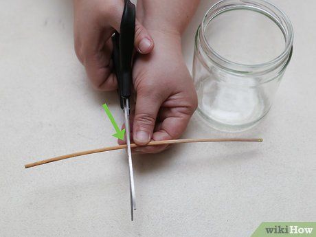 Cắt đoạn gỗ ngắn. Sử dụng kéo để cắt đoạn gỗ sao cho cao hơn khuôn làm nến khoảng 2,5cm.