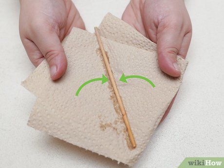 Lau sạch que gỗ. Lấy que gỗ ra khỏi dầu và lau bớt dầu thừa bằng khăn giấy sạch.