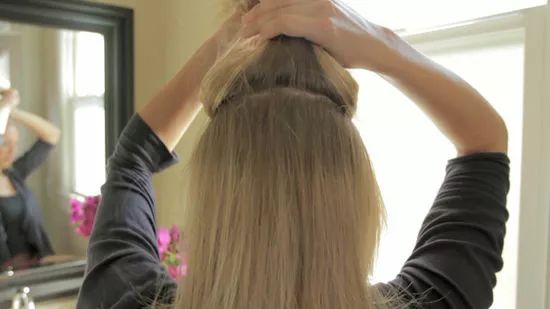 - Chải tóc từ phía sau lên trên để không còn nếp. Nếu bạn muốn tết 2 bím tóc hoặc nhiều hơn, hãy chia tóc trên đỉnh đầu thành nhiều phần.