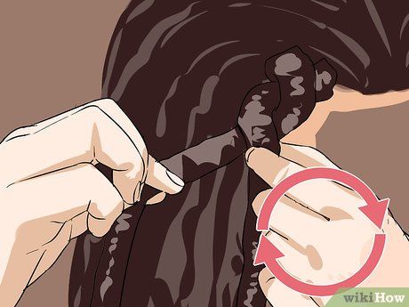 Sau khi cuộn lọn tóc lại với nhau, xoắn chặt chúng sang bên phải. Cuộn về phía trái và xoắn lọn tóc riêng lẻ về phía trái. Lặp lại cho đến khi đến phần đuôi tóc.