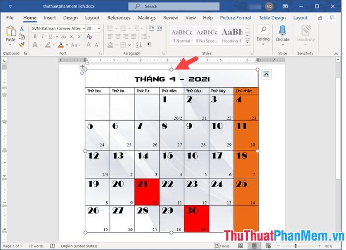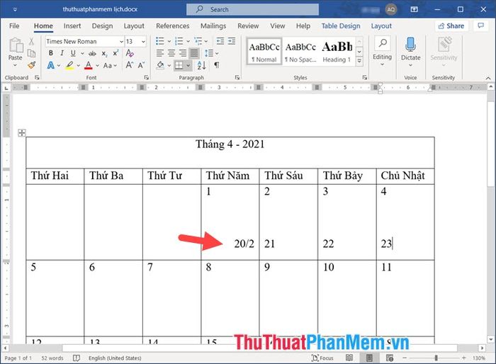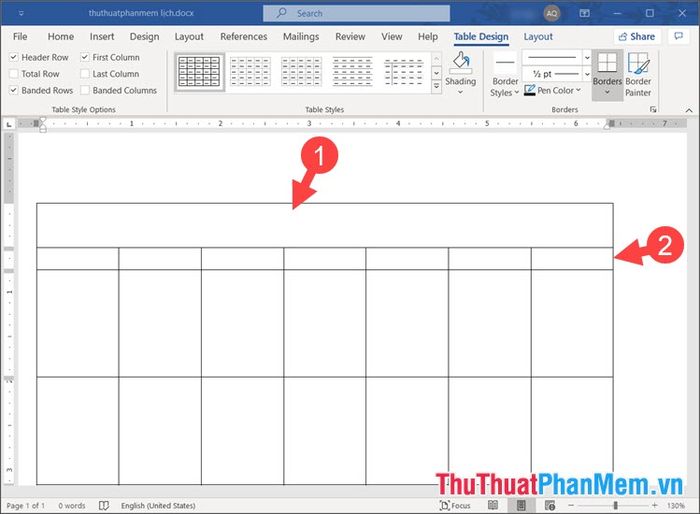 1. Hướng dẫn tạo lịch trong Word sử dụng bảng biểu (Table)