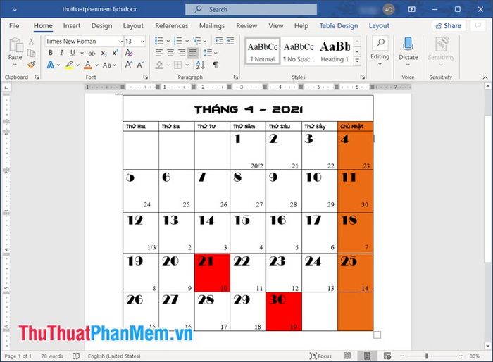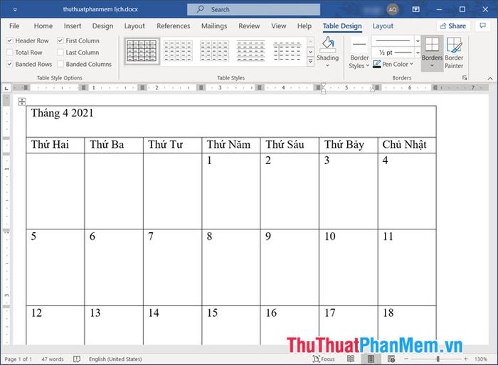 Sau khi hoàn tất, bạn sẽ có một mẫu lịch đẹp và tiện lợi.