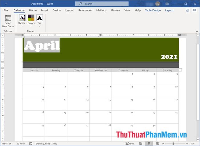 Sau khi hoàn tất, lịch của bạn đã khá hoàn chỉnh. Để làm cho nó trở nên sống động hơn, bạn có thể thêm hình nền.