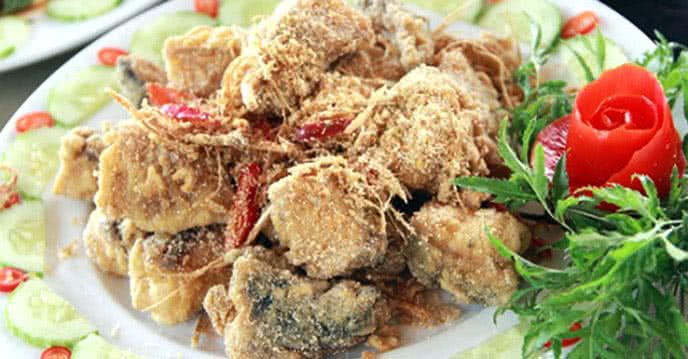 Món cá hồi rang muối ghi điểm với hương vị ngọt đậm của thịt cá kết hợp với muối bùi bùi, mặn mặn ngon tuyệt. Thưởng thức món ăn này, bạn không chỉ cảm nhận hương vị tuyệt vời mà còn nhận được nhiều chất dinh dưỡng như omega, lipit, protein… tốt cho sức khỏe.