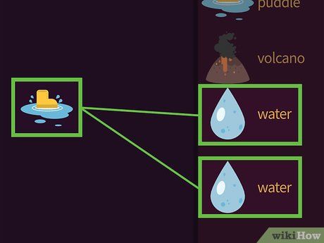 Kết hợp hai biểu tượng 'nước'. Thực hiện thao tác này để tạo ra vũng nước.