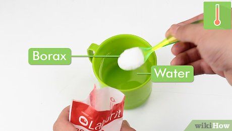 Hòa 1 thìa cà phê borax vào 250ml nước nóng. Khuấy đều và để nguội.