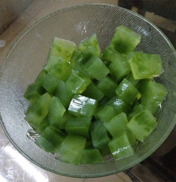 Luộc chín thạch rau câu, đặt nguội và cắt thành từng miếng nhỏ. Bảo quản trong tủ lạnh để thạch đông và giữ độ ngon.