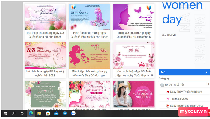 Bước 2:Trên trang sẽ hiển thị các mẫu thiệp mừng ngày 8/3 để bạn có thể lựa chọn. Chọn xong, nhấp vào mẫu thiệp ưa thích.
