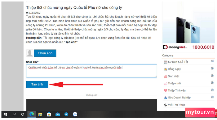 Dưới đây là hướng dẫn chi tiết cách tạo thiệp 8/3 trên trang web thiepmung.com.