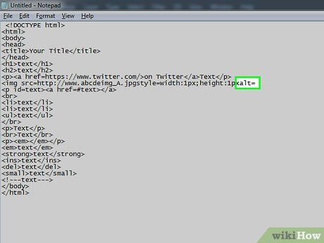 Nhập thông tin mô tả thay thế. Đây là nội dung xuất hiện khi ảnh không thể hiển thị. Để làm điều này, nhập alt= và mô tả của bạn.