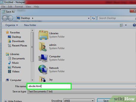 Đặt tên cho tập tin HTML. Thay đổi tên tại phần 'Lưu thành' và thêm đuôi .html.