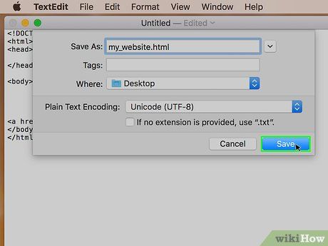 Chọn Lưu (Save). Thao tác này nằm ở góc phải dưới cửa sổ. Đây là cách lưu tập tin dưới dạng trang HTML.