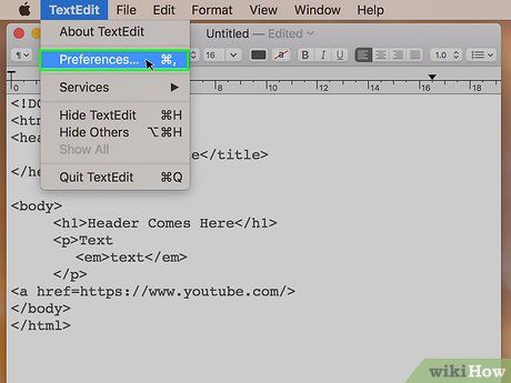 Chọn TextEdit. Đây là lựa chọn ở góc trái trên màn hình. Một danh sách sẽ hiện ra ngay lập tức.