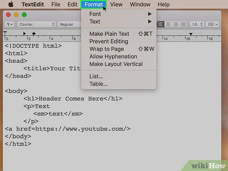 Nhấp vào Định dạng (Format). Lựa chọn này nằm ở phía trên cùng của màn hình.