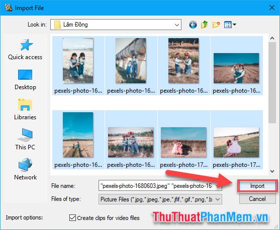 Bước 2: Chọn các ảnh bạn muốn sử dụng để tạo video, sau đó nhấn Import.