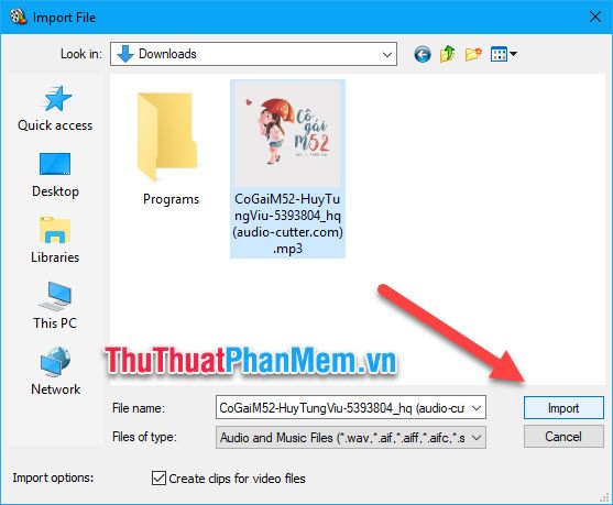 Chọn file nhạc mà bạn muốn và nhấn Import.