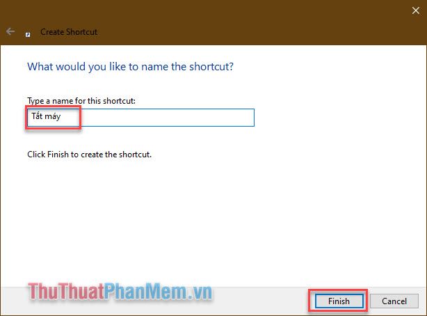 Ở bước tiếp theo, nhập tên cho shortcut theo ý muốn của bạn và cuối cùng là nhấn Finish.