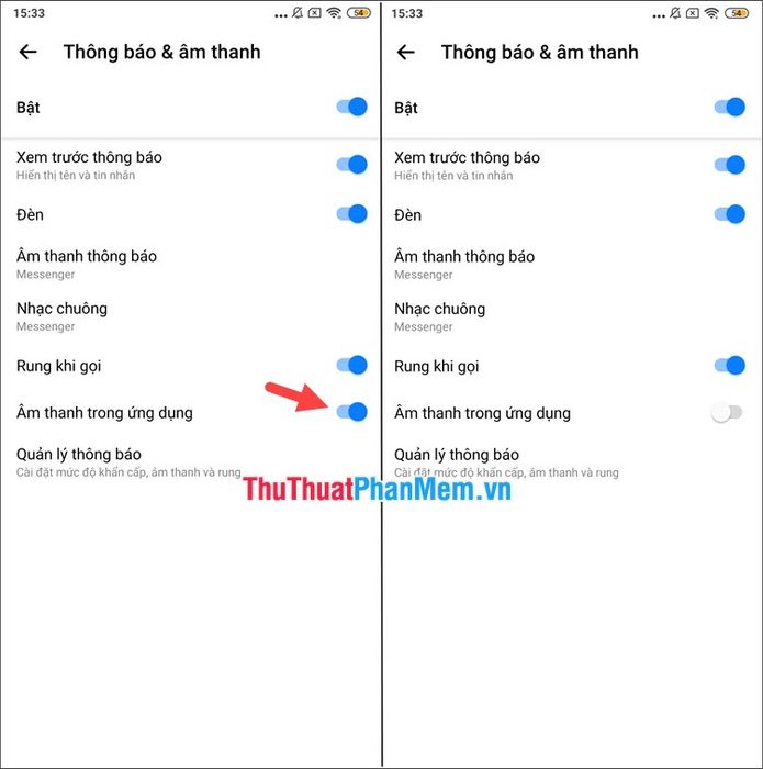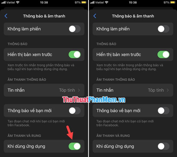 Hoàn thành Bước 2: Bạn gạt công tắt Âm thanh trong ứng dụng sang Tắt là xong.