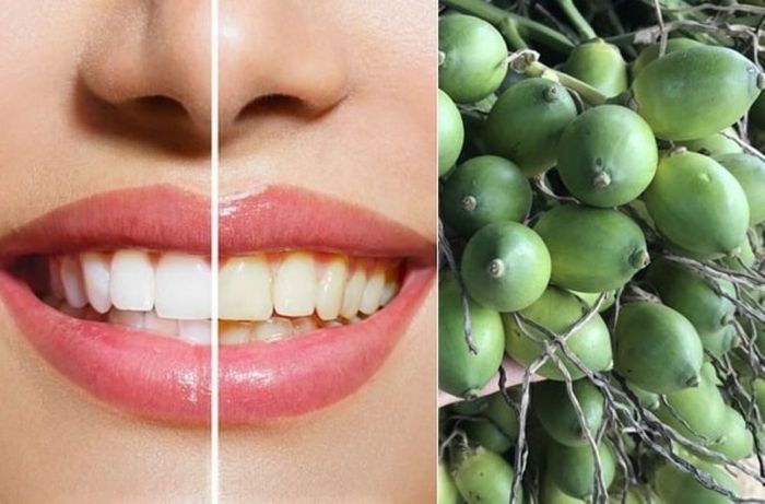 Phương pháp tẩy trắng răng an toàn bằng trái cau rất đơn giản (Nguồn: Internet)Trong cau có các thành phần hóa học như muối vô cơ, tanin, laurin,… hỗ trợ tẩy trắng răng và ngừa sâu răng.