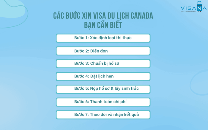 Quy trình xin visa du lịch Canada tự túc gồm 7 bước cơ bản: