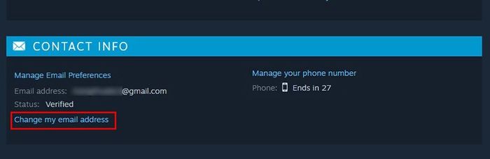 Tại Màn Hình Chính Steam, Chọn Tên Tài Khoản > Nhấn Thông Tin Tài Khoản > Đến Mục Thông Tin Liên Hệ > Chọn Thay Đổi Địa Chỉ Email > Chọn Vào Gửi Mã Xác Nhận Đến Điện Thoại Hoặc Gửi Mã Xác Nhận Đến Email... > Nhập Mã Vừa Được Gửi Về Số Điện Thoại Hoặc Email > Nhấn Tiếp Tục > Nhập Email Mới > Nhấn Thay Đổi Email > Nhập Lại Email Mới > Nhập Mã Xác Nhận Được Gửi Về Email Mới > Nhấn Xác Nhận Thay Đổi Email Để Hoàn Tất Thay Đổi Email.