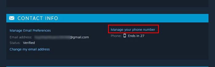 Đi đến mục Contact info và chọn Quản lý số điện thoại của bạn.