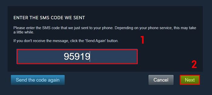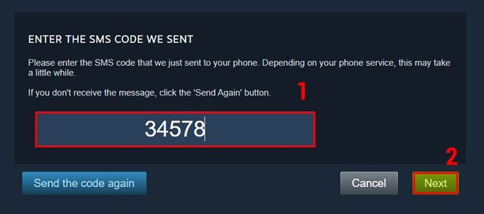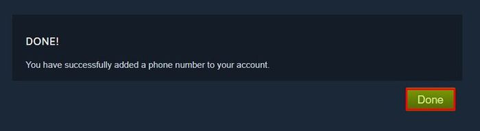 Tại giao diện chính Steam, chọn tên tài khoản > Nhấn Thông tin Tài Khoản > Đến mục Thông tin Liên Hệ và chọn Thêm số điện thoại > Chọn mã vùng Việt Nam (+84) > Nhập số điện thoại > Nhấn Tiếp Theo > Vào email đăng ký Steam và mở thư mới được Steam gửi đến > Chọn vào Thêm số điện thoại > Nhấn Tiếp Theo > Nhập mã xác nhận vừa được gửi về số điện thoại của bạn > Nhấn Tiếp Theo > Nhấn Hoàn Tất để kết thúc.