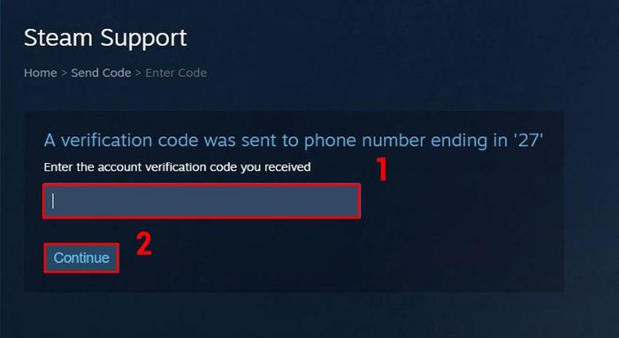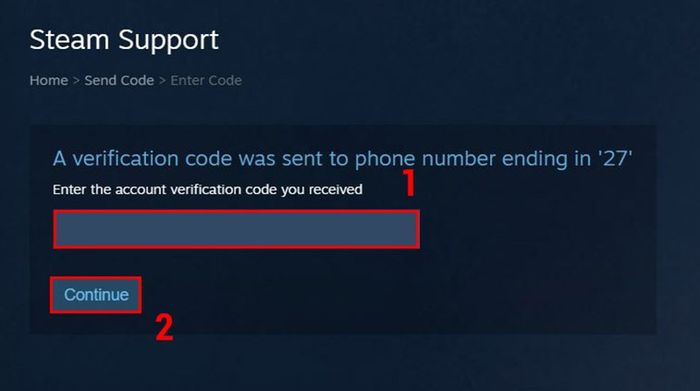 Bước 4: Nhập mã vừa được gửi về số điện thoại của bạn vào ô và nhấn Continue.