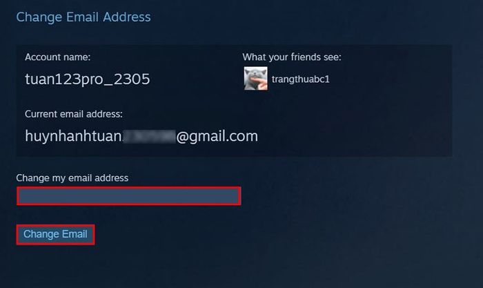 Điền địa chỉ email mới mà bạn muốn sử dụng vào ô và nhấn Thay Đổi Email.