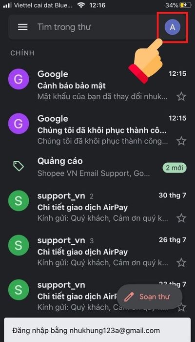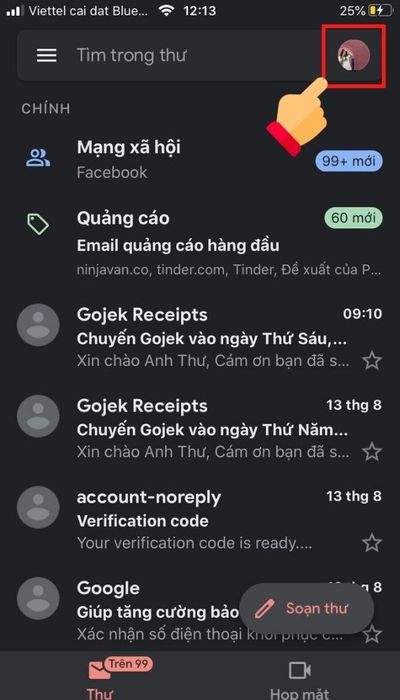 Bước 6: Để kiểm tra hoặc chuyển đổi giữa các tài khoản Gmail, hãy chọn biểu tượng trang cá nhân để xem danh sách các tài khoản đã thêm.