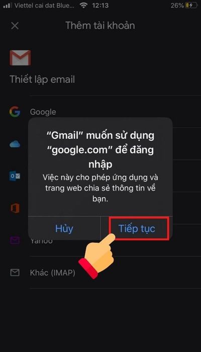 Chọn Tiếp tục để đăng nhập vào tài khoản.