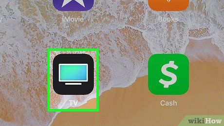 Mở ứng dụng TV trên iPad. Ứng dụng có màu đen với biểu tượng TV màu xanh trên đầu. Bạn có thể tìm thấy ứng dụng này trên Màn hình chính.