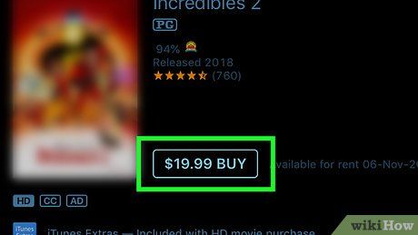 Chạm vào MUA (Buy). Nút này nằm bên phải ảnh bìa của phim, và có giá ở bên phải nút (ví dụ $9.99 MUA).