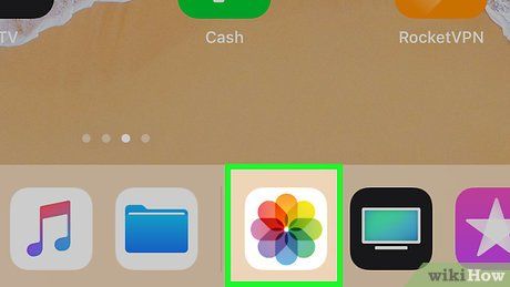 Mở ứng dụng Hình ảnh trên iPad. Ứng dụng này có màu trắng với biểu tượng chong chóng ở phía trên.
