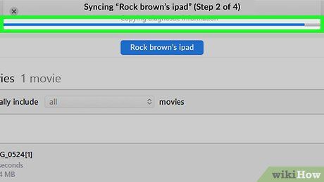 Đợi iTunes hoàn tất đồng bộ hóa phim. Bạn có thể theo dõi tiến trình bằng cách xem thanh màu xanh ở phía trên cửa sổ iTunes.
