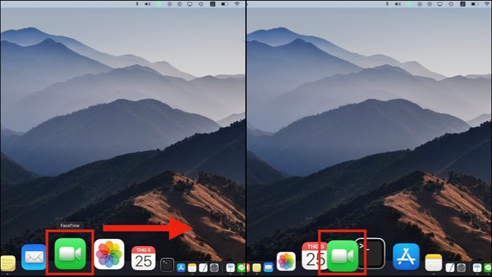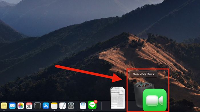 Để xóa ứng dụng khỏi thanh Dock, bạn có thể kéo và thả ứng dụng từ thanh Dock vào biểu tượng Thùng rác.