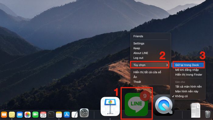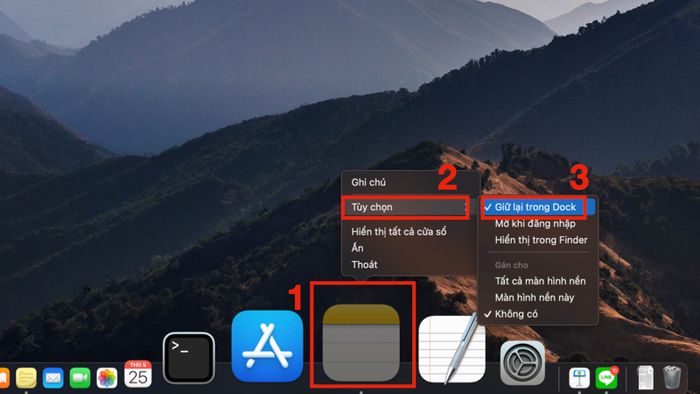 Mở ứng dụng bạn muốn thêm > Click chuột phải (2 ngón cùng lúc) vào ứng dụng > Chọn Lựa chọn (Options) > Chọn Giữ lại trong Dock (Keep in Dock).