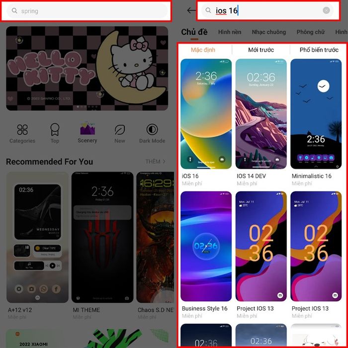 Bước 1: Mở ứng dụng Chủ đề trên điện thoại và sử dụng chức năng Tìm kiếm với từ khóa "iOS 16".