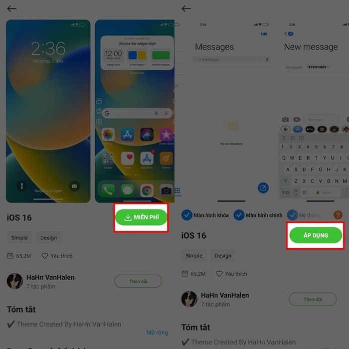 Bước 2: Chọn một chủ đề phù hợp và nhấn Miễn phí để tải về. Khi tải xong, nhấn Áp dụng để thay đổi giao diện của điện thoại.