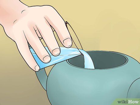 Rửa sạch ấm trà, đặc biệt là ấm gốm, bằng nước nóng. Bước này giúp làm ấm ấm trà và đảm bảo trà không bị nguội khi pha.