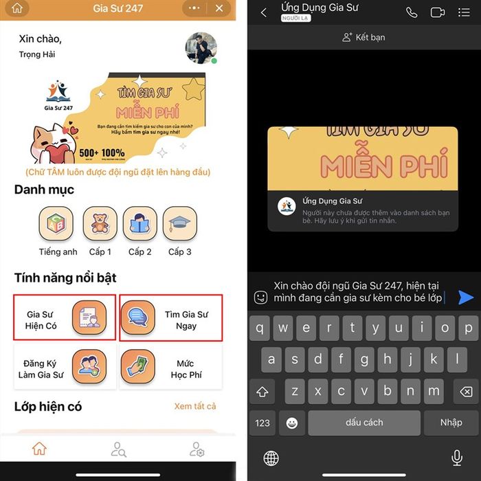 Bước 2: Tại đây, chọn Gia sư hiện có hoặc nếu cần tìm nhanh, chọn Tìm gia sư ngay.