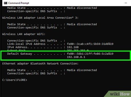 Tìm mục .Default Gateway của bộ điều hợp hoạt động. Tìm bộ điều hợp mạng bạn đang sử dụng bằng cách kiểm tra tên. Mục Default Gateway sẽ hiển thị địa chỉ IP của bộ định tuyến.